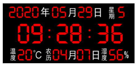 数字子钟(带农历二联) | | 1、自身精度:±0.5s/d。 2、工作温度:-10~+50℃;相对湿度:≤95%。 3、采用外置电源适配器供电;输入电压:110~220V,50HZ,输出5V,采用DC2.5接口。 4、支持串口对时或网络NTP对时协议;NTP对时精度:1~10msms,串口对时精度:1~100ms。 5、特制高亮LED数码管二联显示时分秒、公历、星期、农历、温湿度;主时间用3寸数码管。 6、LED发光强度≥1200mcd,LED刷新速度≥150帧/秒。 7、外框采用超薄白色铝合金机箱,边框采用圆角设计,圆角≥15°。 8、面板采用高透光有机玻璃,印网内层印刷处理,防眩光,不刺眼。 9、外形尺寸:580mm×210mm×25mm(单面)/ 580mm×210mm×45mm(双面)。 10、平均无故障时间(MFBF):≥5万小时。 |