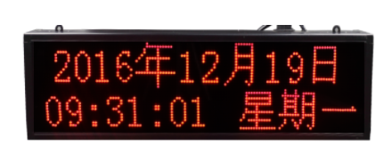 | 1、自身精度:±0.5s/d。 2、工作温度:-10~+50℃;相对湿度:≤95%。 3、供电电压:220VAC,50HZ。 4、支持串口对时或网络NTP对时协议;NTP对时精度:1~10msms,串口对时精度:1~100ms。 5、支持任何设置显示,年月日、时分秒、星期、温湿度,支持远程设置任意通知消息显示。 6、采用P3.75点阵模组,恒流驱动,1/16扫描方式;发光强度500~1500mcd。 7、外框采用超薄黑色铝合金机箱,磨砂PC面板,防眩光,不刺眼。 8、外形尺寸:640mm×180mm×55mm(单面)/640mm×180mm×85mm(双面)。 9、平均无故障时间(MFBF):≥5万小时。 10、计算机远程开启显示屏,关闭显示屏,集中管理,点对点监控。 11、计算机远程控制显示屏夜间白天亮度自动调节。 |